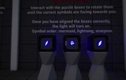 Interact with the puzzle boxes to rotate them until the correct symbols are facing toward you.